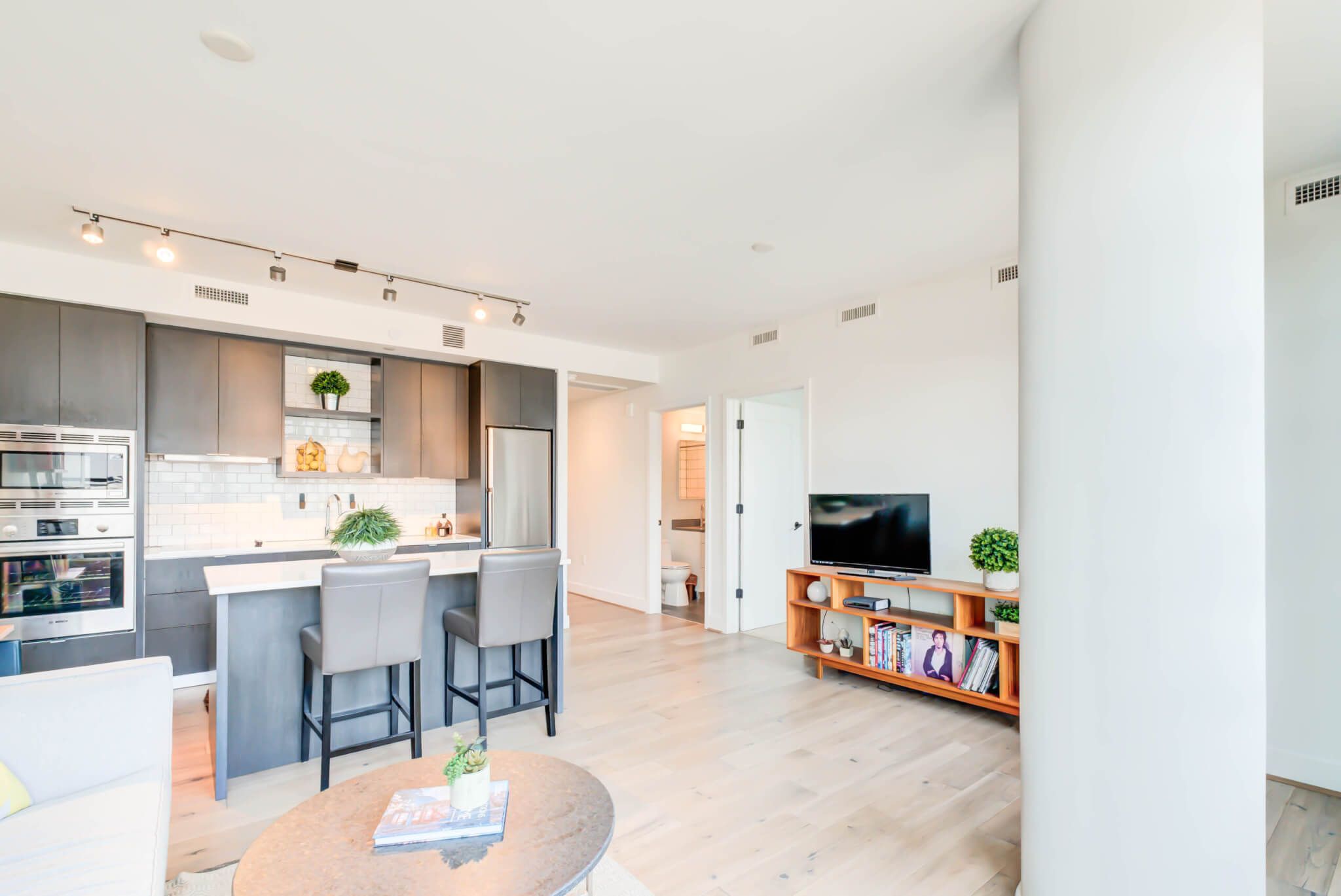 Step into spring in style—just in time for Washington Nationals Opening Day! Welcome to this sun-drenched 1-bedroom, 1-bath retreat at The Bower, perfectly nestled in the heart of Navy Yard. This bright and airy home is designed for easy, modern living, with an open-concept layout and a stunning wall of windows that fill the space with natural light. Slide open the doors to your private terrace and take in peaceful river views—ideal for sipping your morning coffee or unwinding on a breezy spring evening.The sleek, contemporary kitchen shines with high-end appliances and stylish finishes, while thoughtful touches like a welcoming entryway with coat closet and an in-unit washer/dryer make everyday living effortless. At The Bower, every day feels elevated. Enjoy access to top-tier amenities including a rooftop terrace with sweeping city views (perfect for sunset hangs), a fully equipped fitness center, and a beautifully designed party room. Outside your door, Navy Yard is in full bloom—riverfront parks, buzzing restaurants, local shops, and the Metro are all just steps away. And with baseball season kicking off, the neighborhood energy is unmatched. This is your chance to live in one of D.C.’s most vibrant, scenic, and exciting communities—right when it’s at its best.