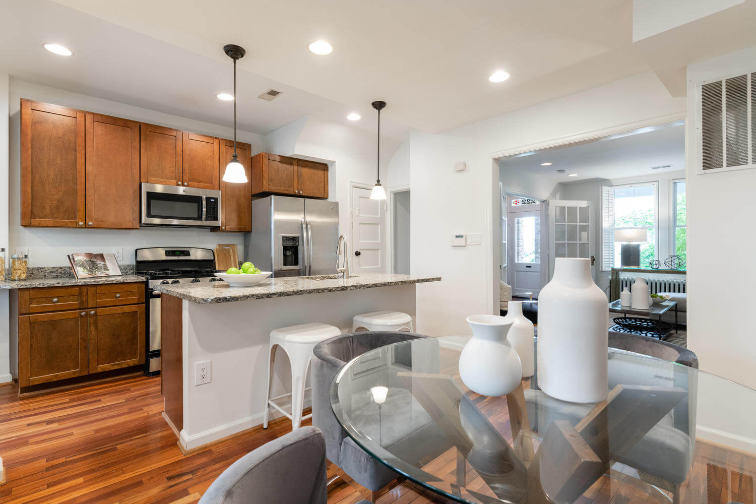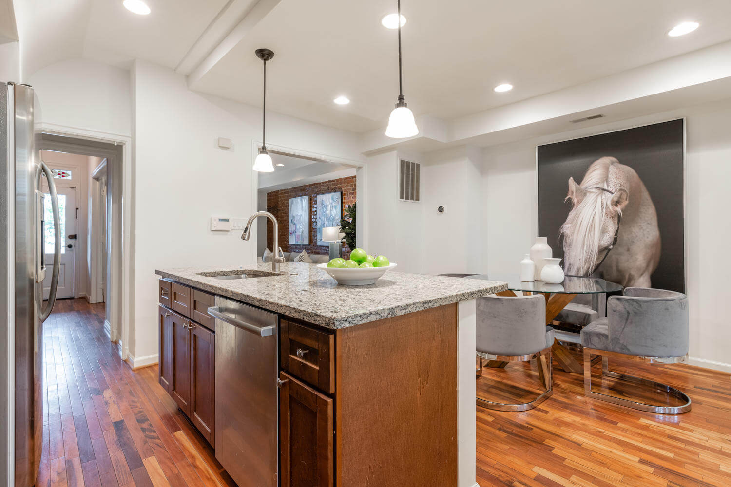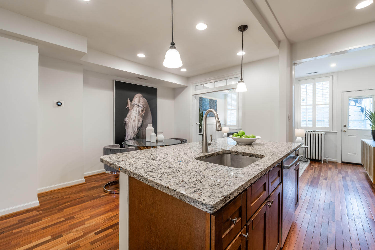 East facing porch-front, in-bounds for Maury, tucked on a quiet block between Lincoln Park and the Metro. The owners went to great lengths to preserve the home’s most important original architectural details including traditional Capitol Hill pine floors, radiators and the coveted “circular” second floor layout. A quick break on the porch swing required before leaving this home.
