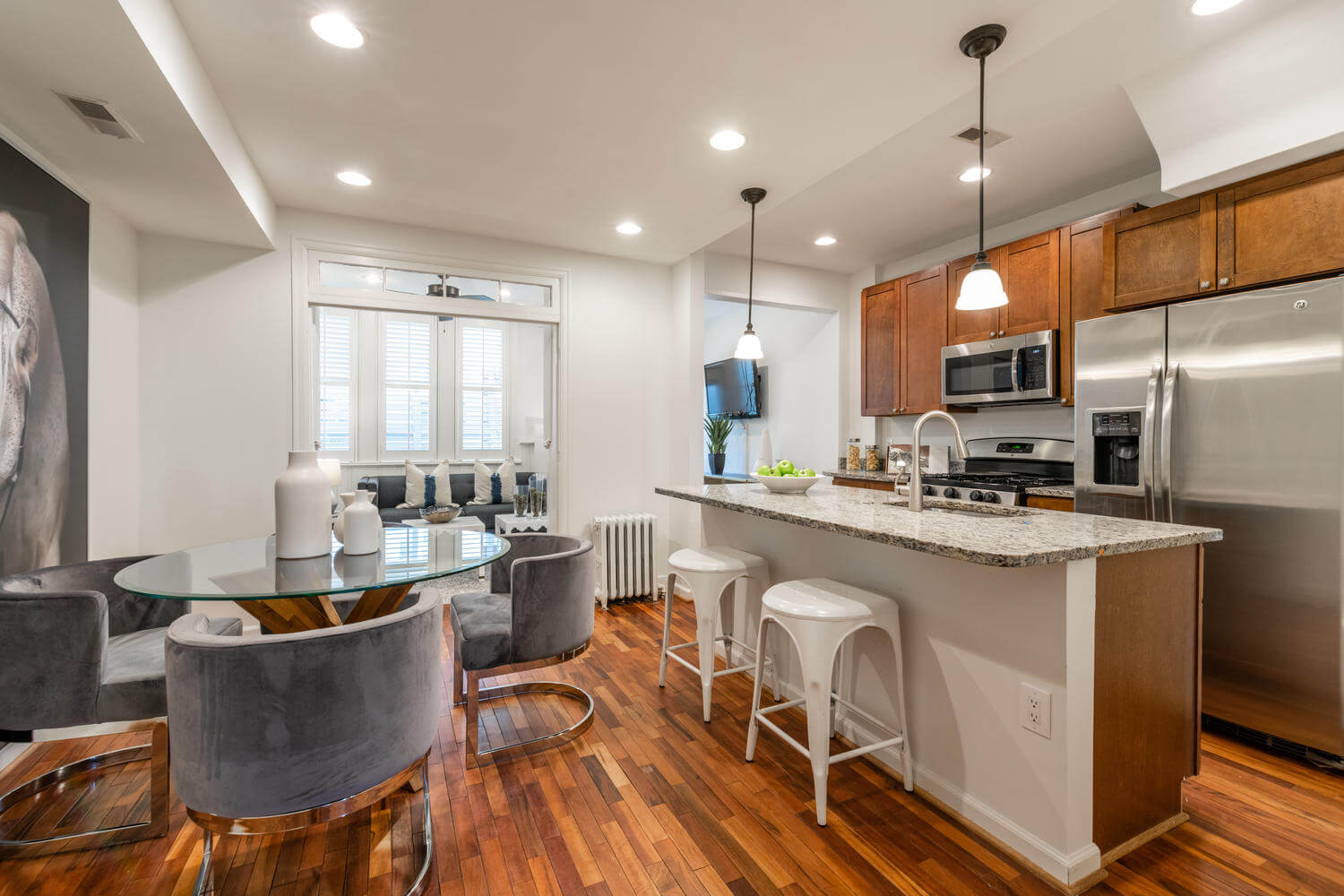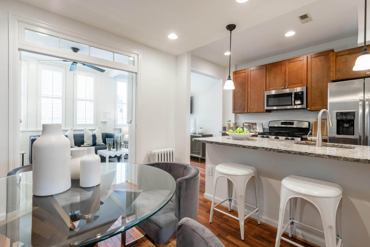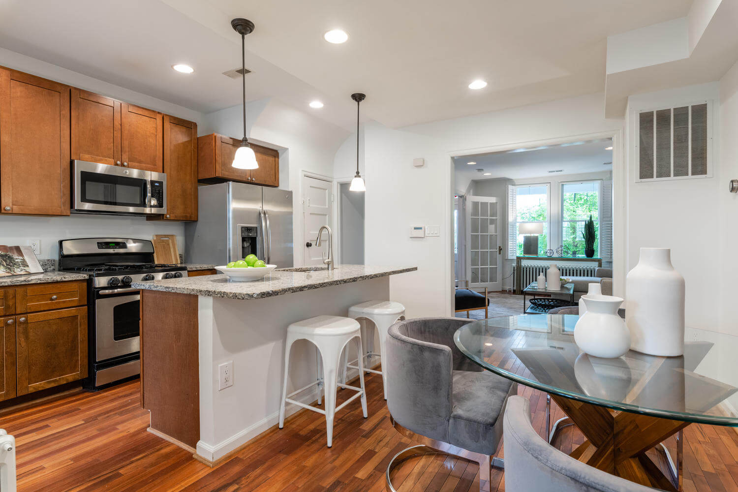 East facing porch-front, in-bounds for Maury, tucked on a quiet block between Lincoln Park and the Metro. The owners went to great lengths to preserve the home’s most important original architectural details including traditional Capitol Hill pine floors, radiators and the coveted “circular” second floor layout. A quick break on the porch swing required before leaving this home.