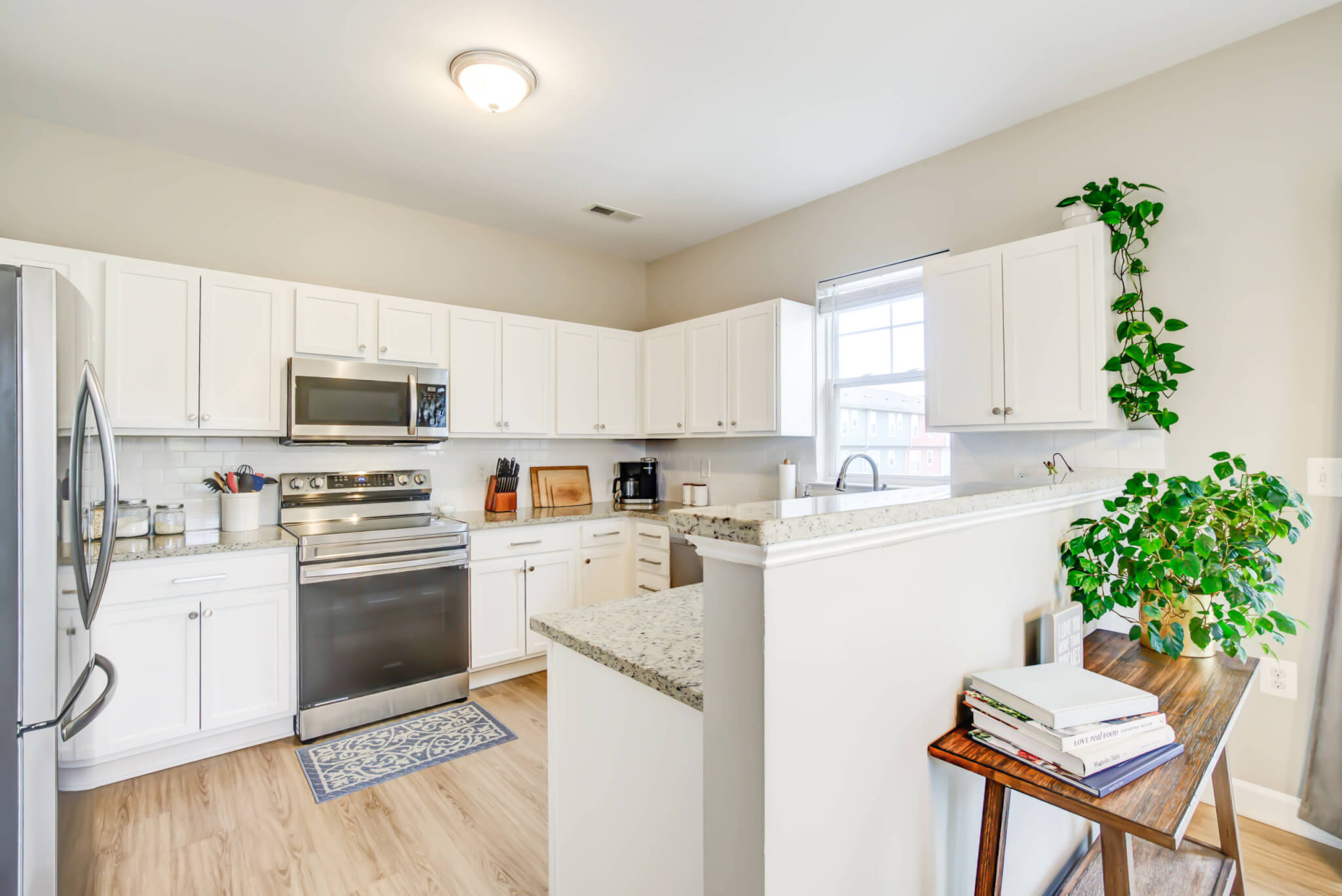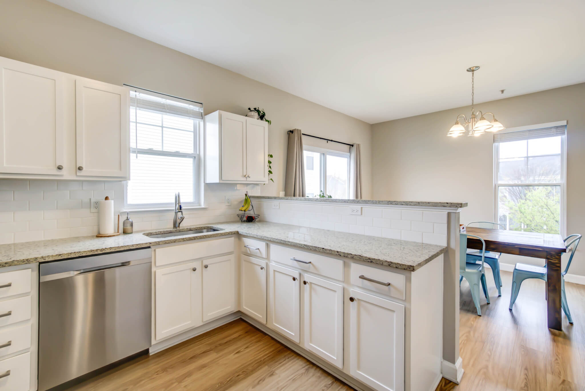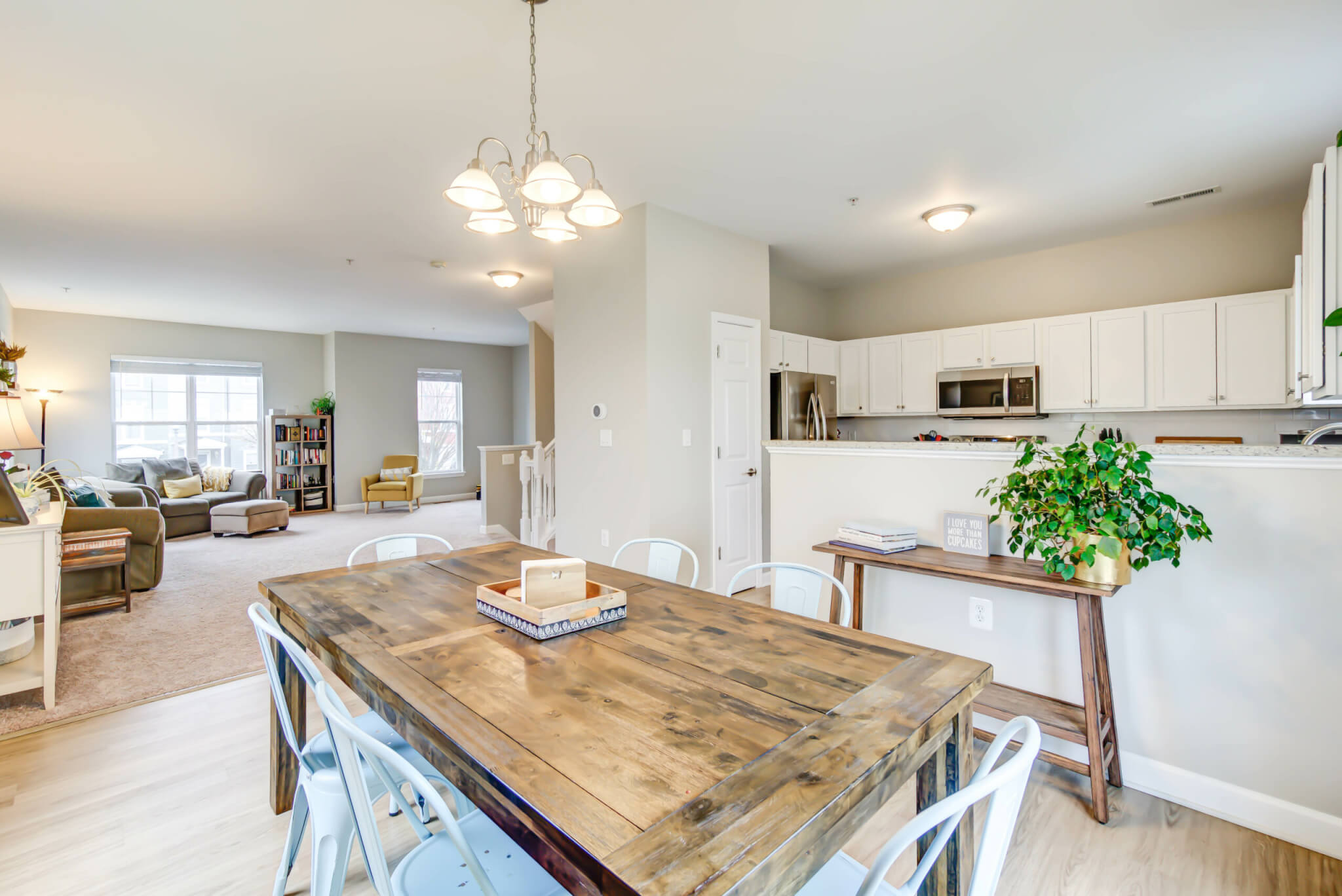 Welcome to this updated and impeccably maintained end-unit townhome nestled on a serene tree-lined street in the Marshall Heights neighborhood, a quiet hidden gem with a rich history. Situated on one of the largest lots in the community and spanning three levels, this spacious home is lined with windows on three sides drenching it in natural light. The main level features a gracious open living room with a sun-filled dining area and well-appointed kitchen. On the top floor you’ll find a primary suite with double walk-in closets and full bathroom, two additional bedrooms, and a second hall bathroom with plenty of storage. The walk-out lower level offers a convenient half bathroom, a dedicated laundry room, an expansive flex space primed for family movie nights, a home gym or a fourth bedroom. Topping the list of additional perks is a garage with interior access, additional driveway parking, solar panels, and wraparound lawn space with no hassle of maintenance. Close by you’ll find the Capitol View Library, Woody Ward Recreation Center, the Blue/Silver Metro lines and conveniently located bus routes without sacrificing a strong sense of community.