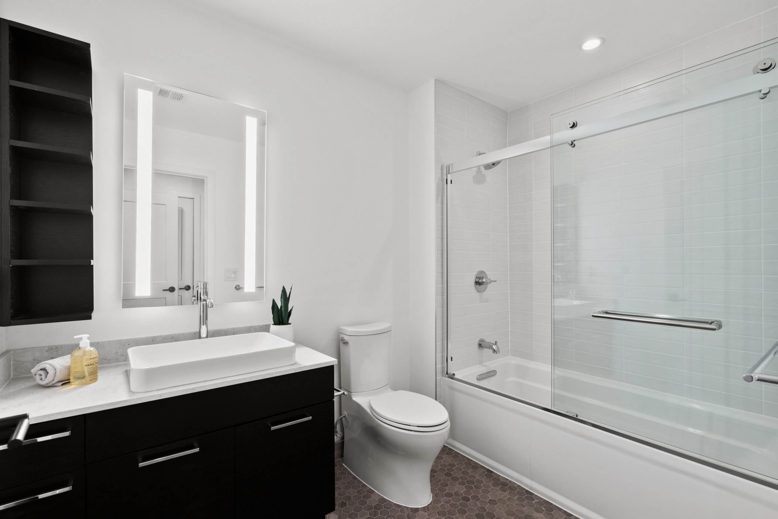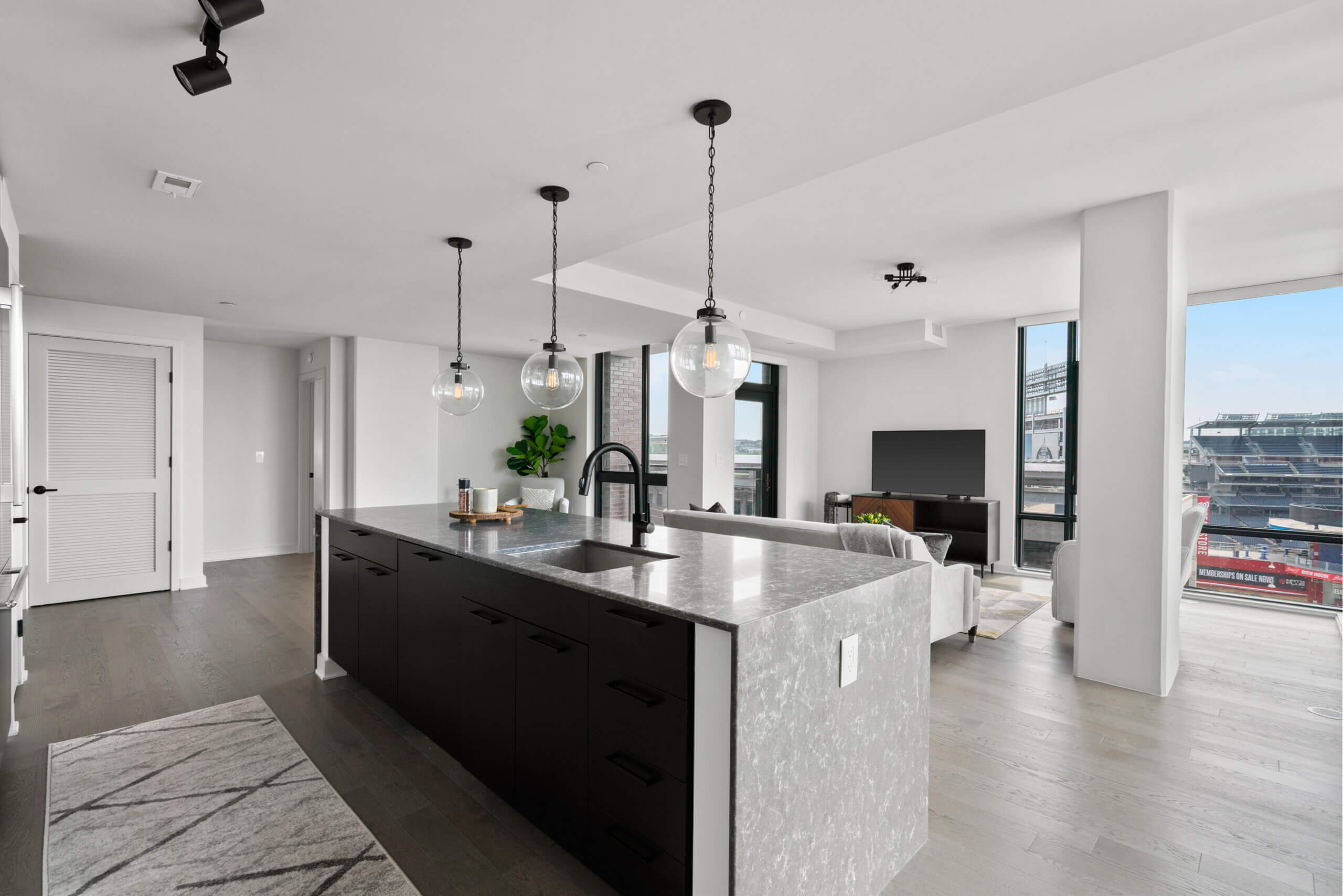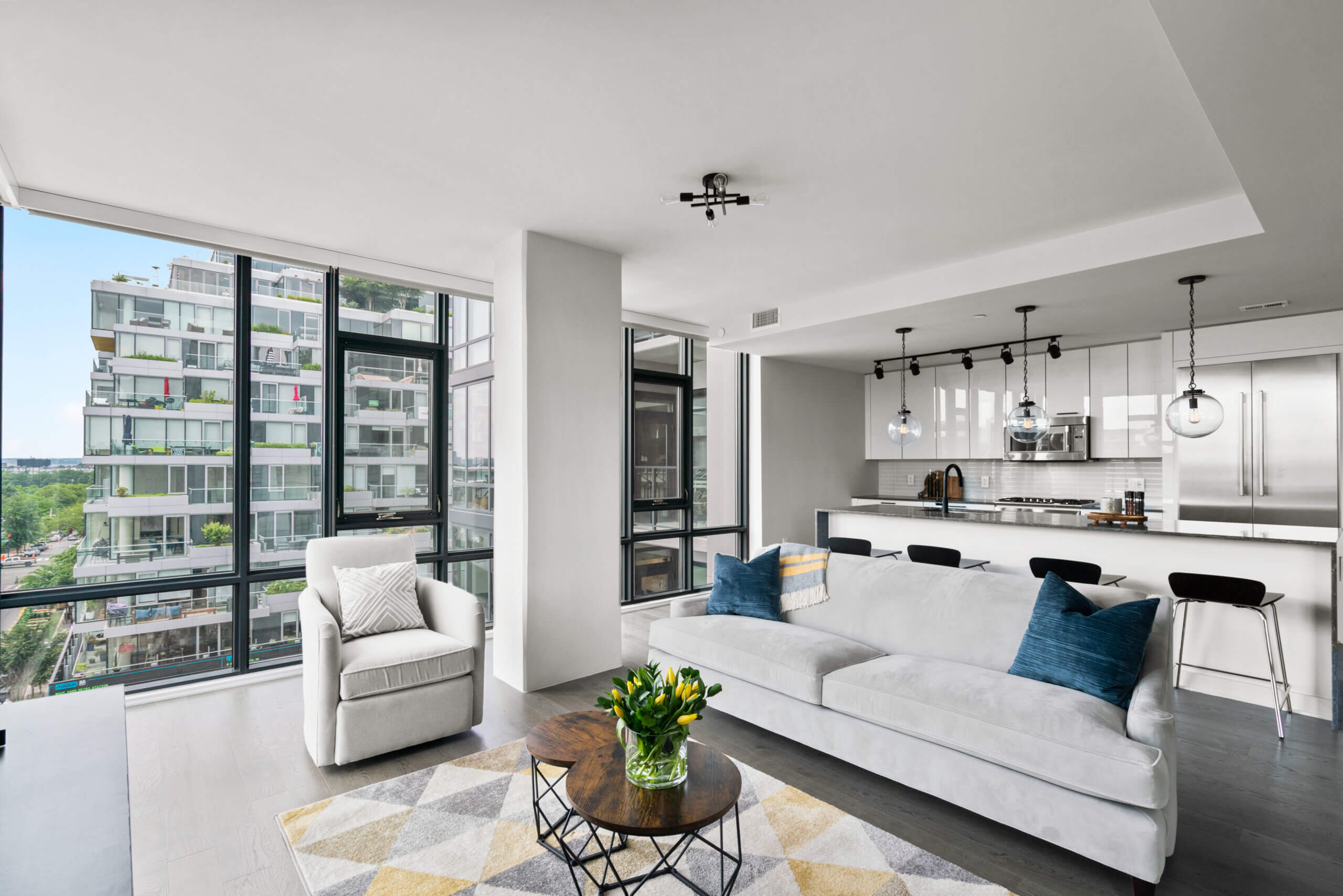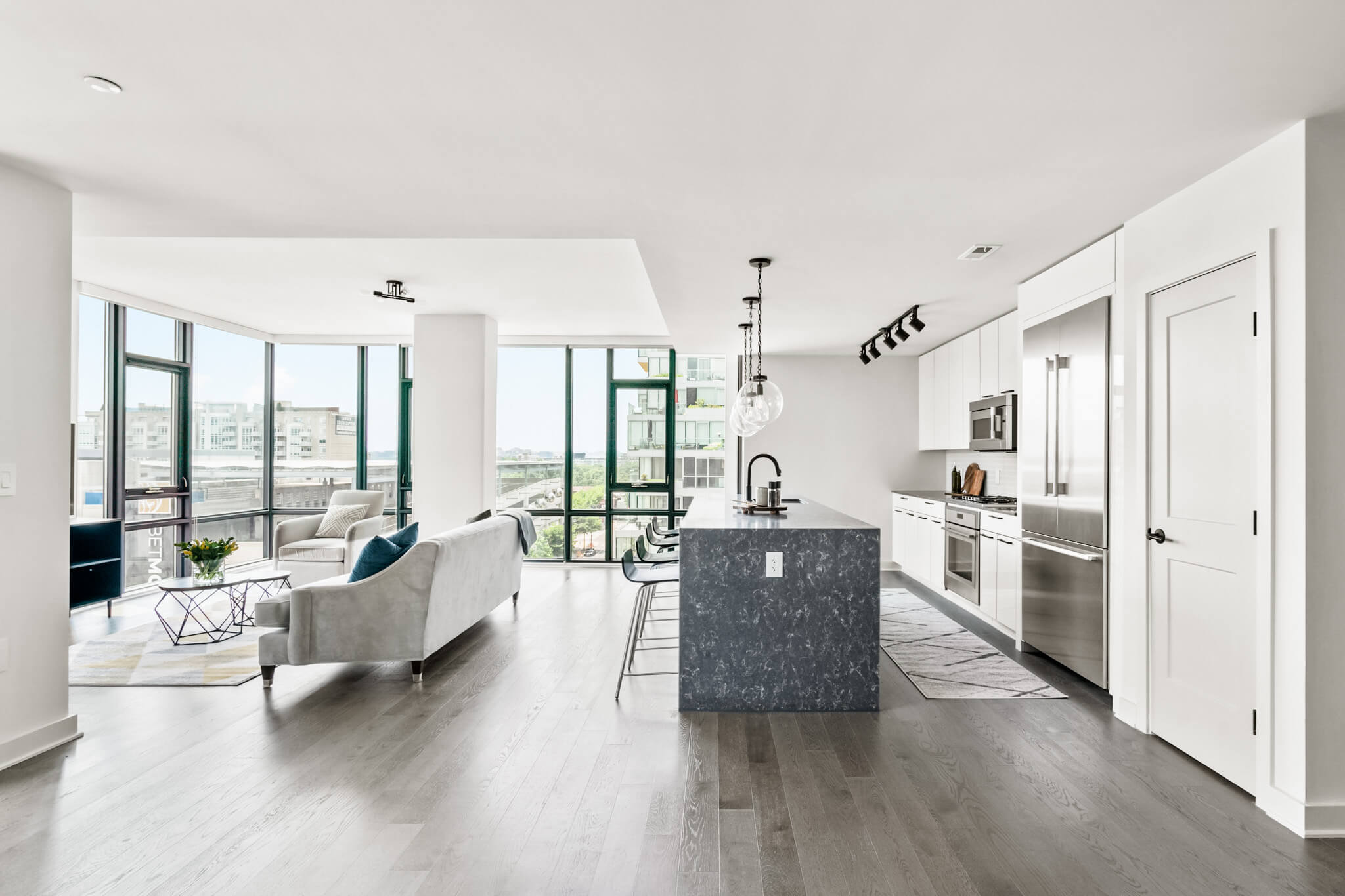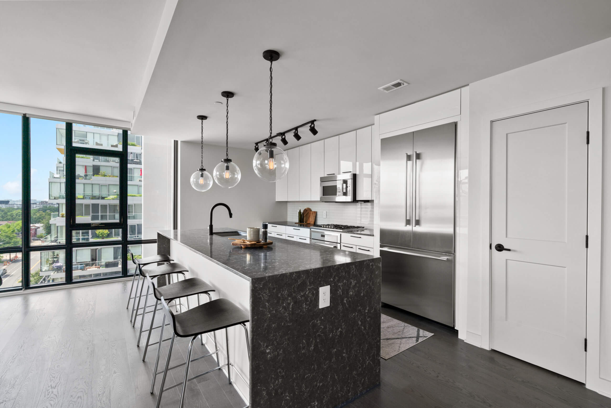 Luxurious modern sophistication in the heart of the Navy Yard. Nothing beats the views from the floor to ceiling windows in this bright corner unit. Enjoy the breezes on spring afternoons while watching a Nationals ballgame from your private balcony or close the custom solar shades and have a night “in” enjoying everything the unit has to offer. The 10’ ceilings and hardwood floors give you a townhome feel across one light-filled level while the primary ensuite bath puts you into the lap of luxury with a dual vanity, freestanding tub, and frameless shower. Amenities abound in this brand new building with a sprawling rooftop terrace, grill stations, private offices, a conference room, fitness center and underground secure parking. The optimal location situated between the Wharf and Capitol Hill affords a lifestyle of endless choice, as you’re surrounded by the best of DC’s recreation, dining and entertainment. Welcome home to The Envy.