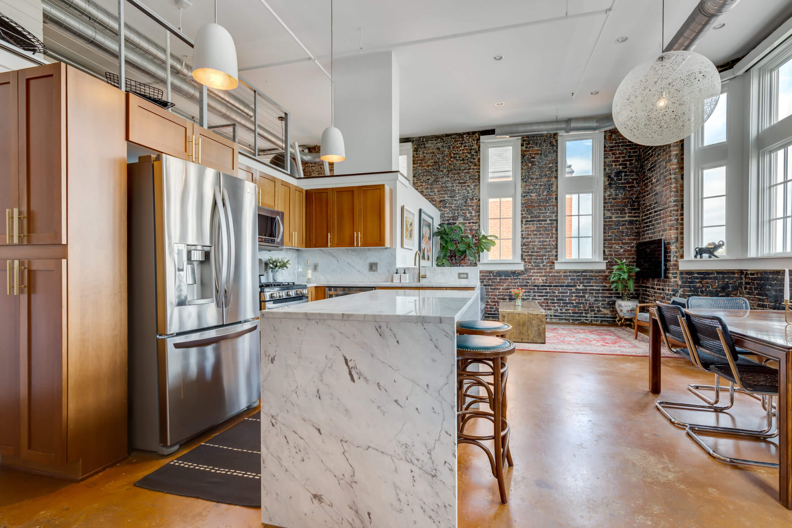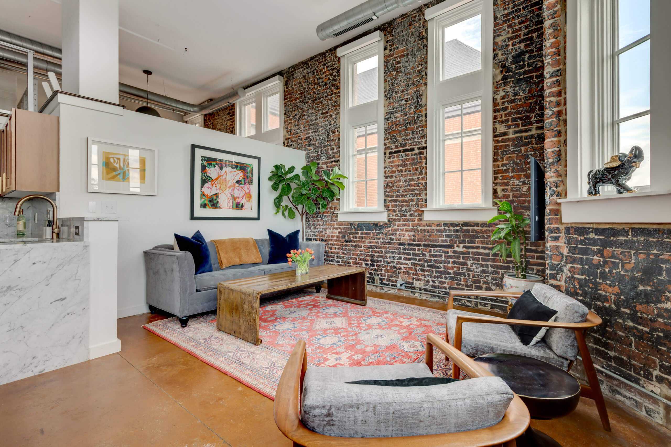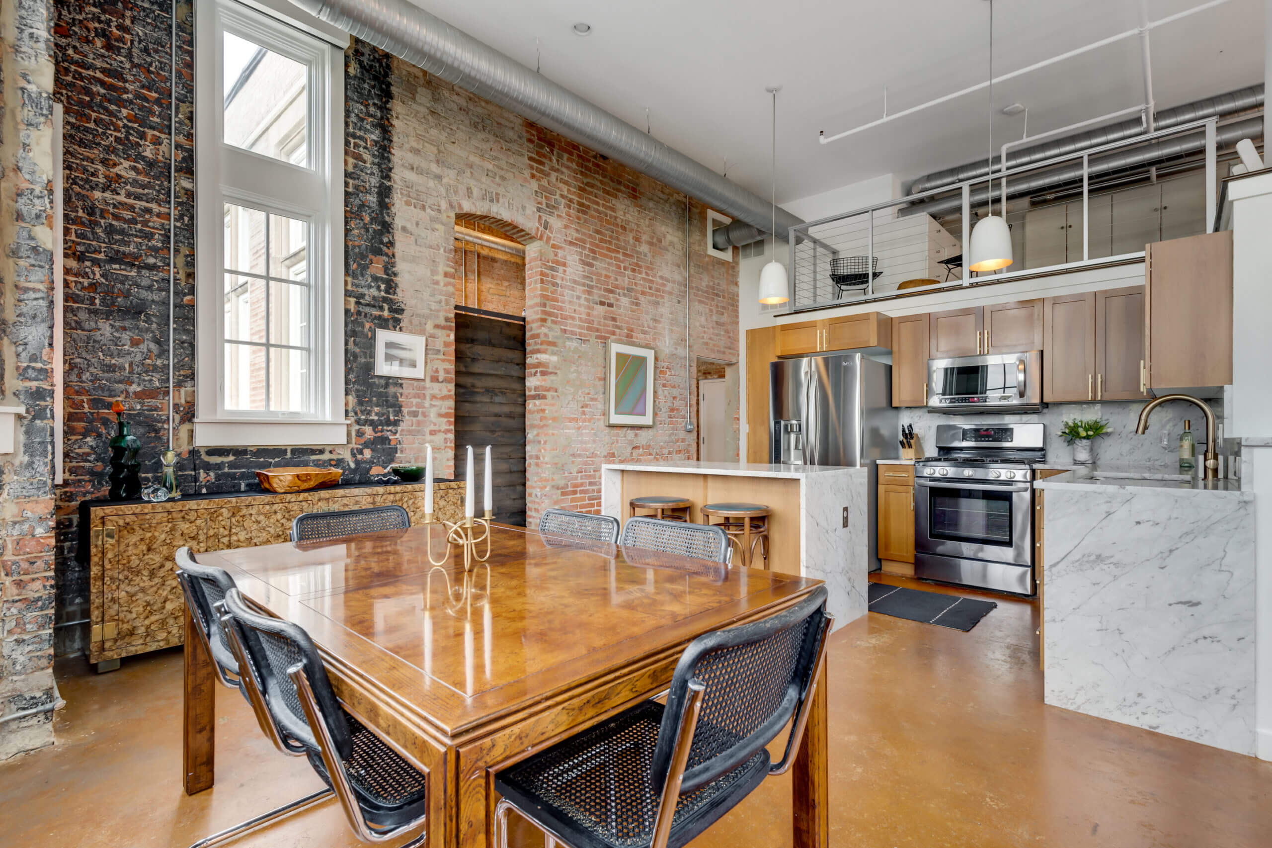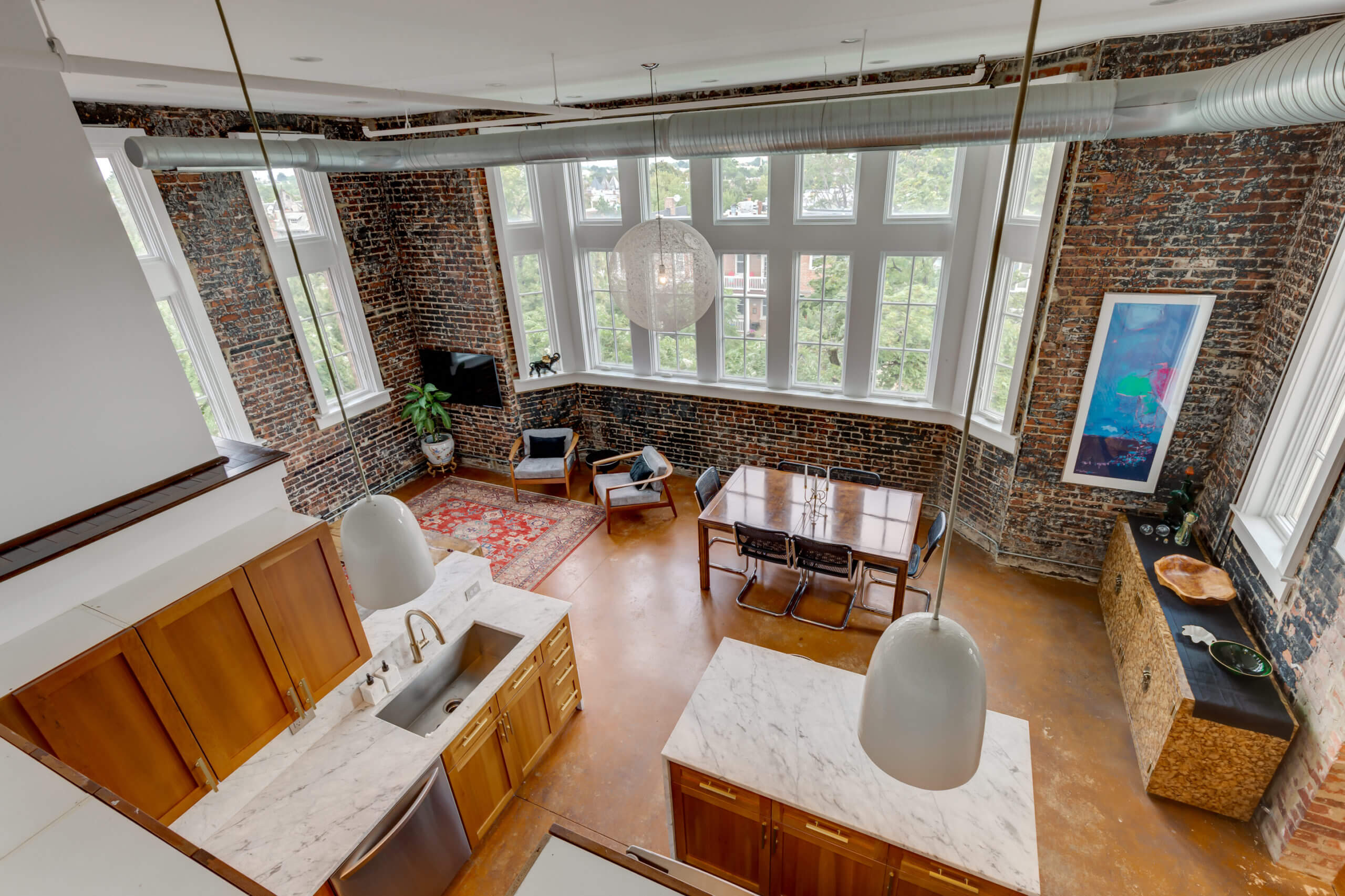 A penthouse unit with soaring cathedral ceilings and panoramic city views. This inspired residence redefines city living, with three bedrooms and two baths across multiple floors. Original exposed brick, floor-to-ceiling windows, and contemporary touches marry throughout creating a unique and thoughtful aesthetic. Amenities include private storage, dedicated garage parking, and in-unit laundry. Ideally located for all-things Capitol Hill, you’re within walking distance to Lincoln Park, H Street Corridor, and historic Eastern Market – Welcome to Lovejoy Lofts.