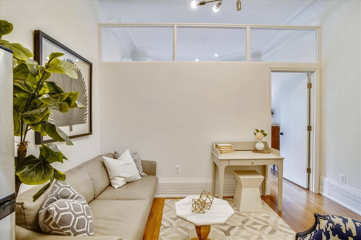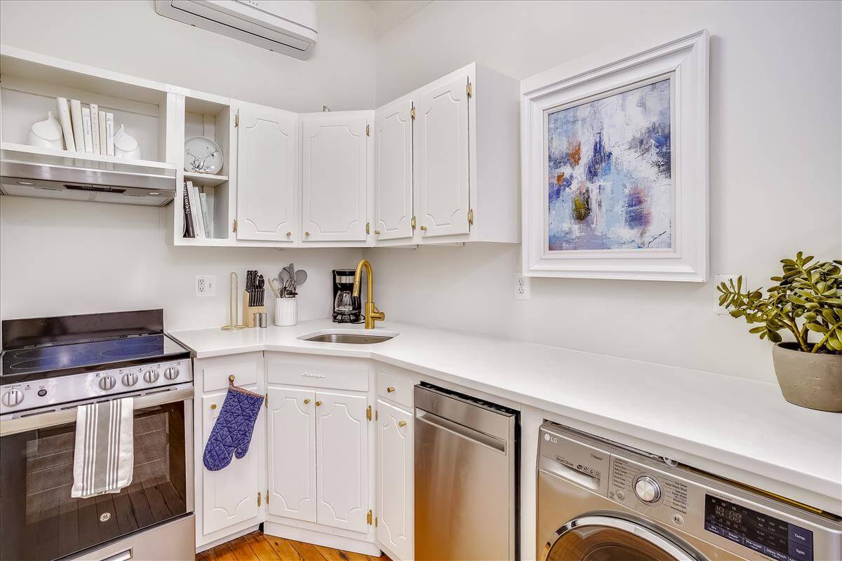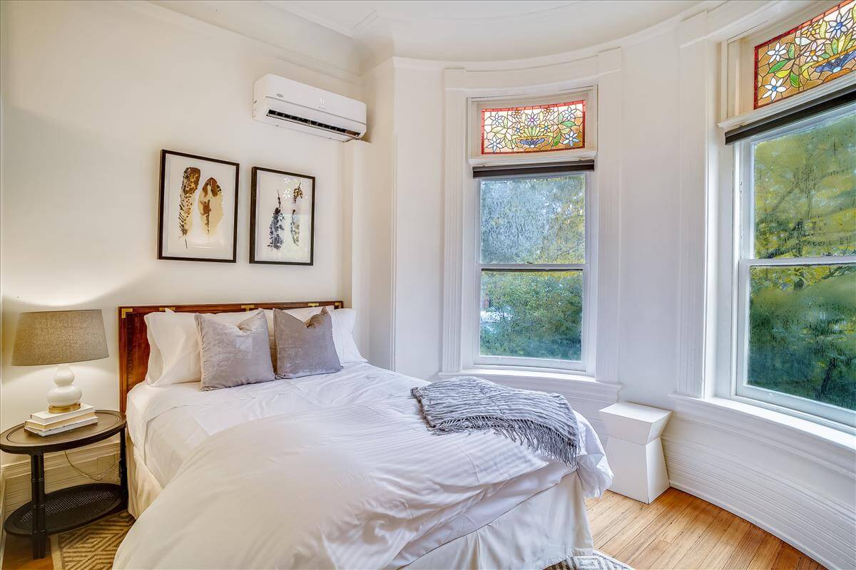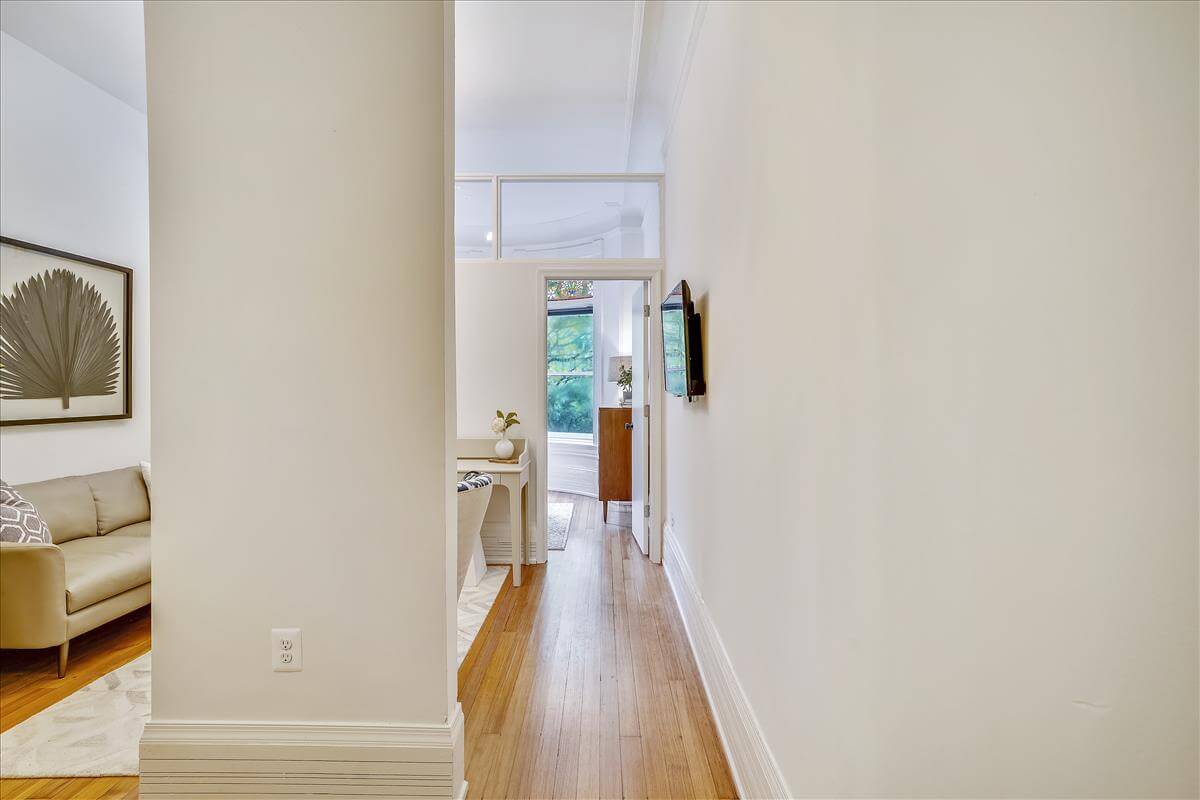 The unit – a bright and newly renovated first floor apartment in a historic DC townhouse with a large bayfront overlooking East Capitol. Tons of natural light and vintage charm mix with contemporary upgrades to the kitchen and bathroom. Quartz counters, custom white cabinets, stainless steel appliances, and a pantry with laundry. Professionally managed by Stay Attache.